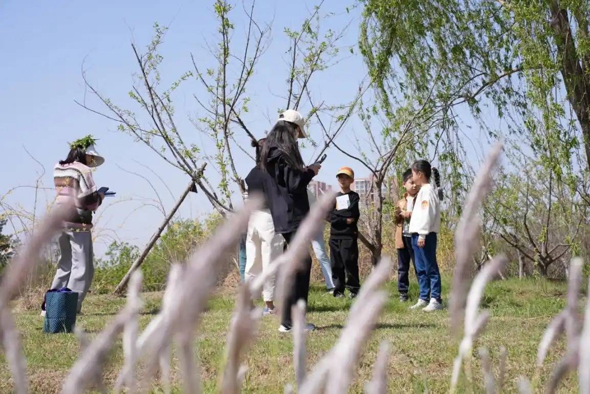 活动现场,孩子们在研学老师的带领下,走进公园的春日景致中,尽情领略春日生机——嫩绿的柳叶缀满枝头,不知名的小花点缀其间。老师引导孩子们仔细观察草木抽芽、花朵绽放的模样,讲解清明踏青与自然复苏的关联,随后带领大家采摘鲜嫩柳枝,手把手教孩子们编织柳冠,在指尖的灵动操作中,感受春天的气息与传统习俗的韵味。