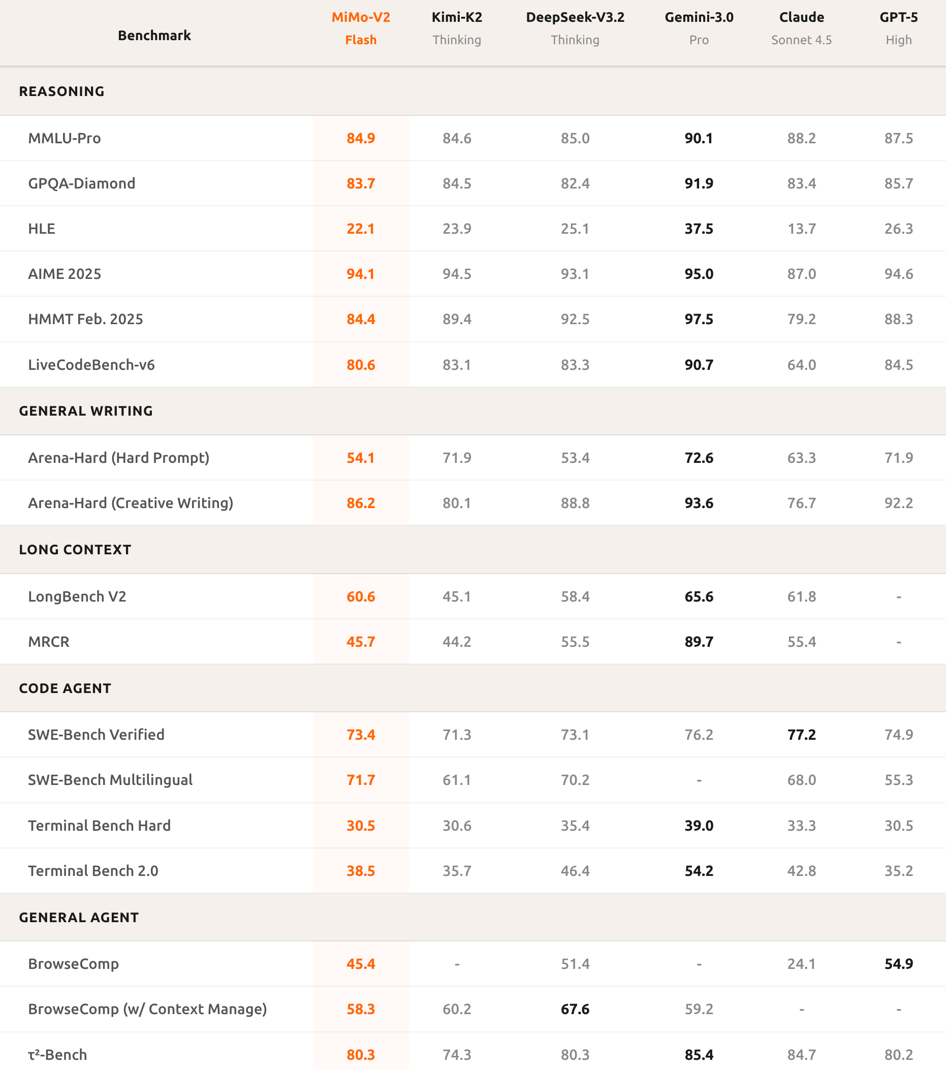 这些数据说明,MiMo-V2-Flash 不仅会写代码,还能真正理解复杂任务逻辑,执行多轮智能体交互。