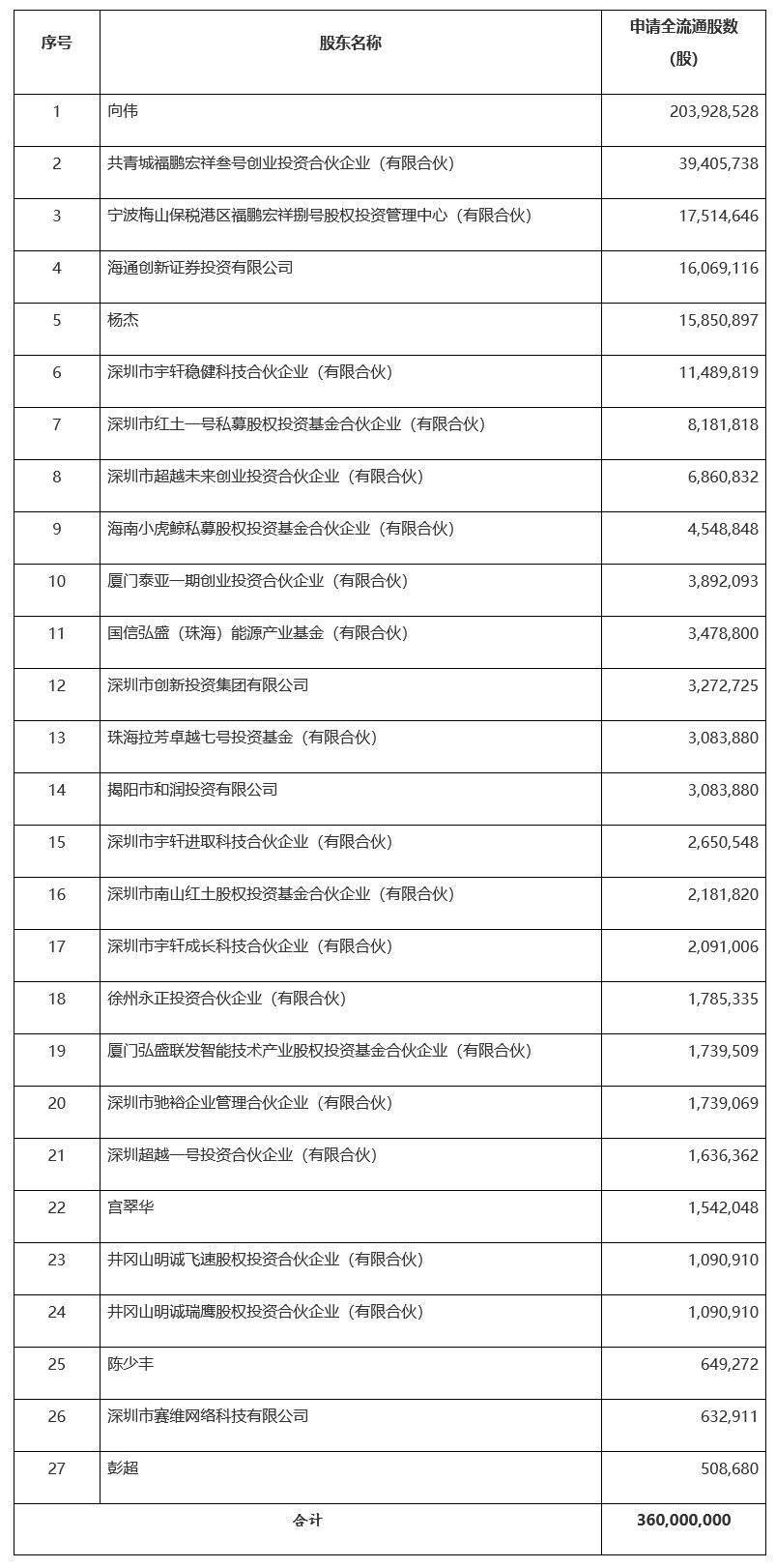 智通财经APP获悉,1月28日,中国证监会国际合作司发布《关于深圳市飞速创新技术股份有限公司境外发行上市及境内未上市股份“全流通”备案通知书》。公司拟发行不超过103,500,000股境外上市普通股并在香港联合交易所上市。公司27名股东拟将所持合计360,000,000股境内未上市股份转为境外上市股份,并在香港联合交易所上市流通。