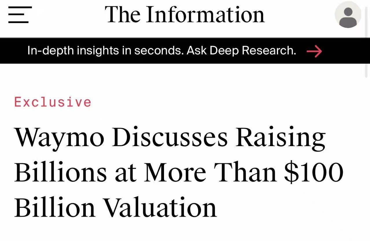 车东西12月17日消息,据外媒The information报道,知情人士透露,Alphabet旗下自动驾驶公司Waymo正在与潜在投资者进行初步洽谈,计划在2026年初完成新一轮融资。